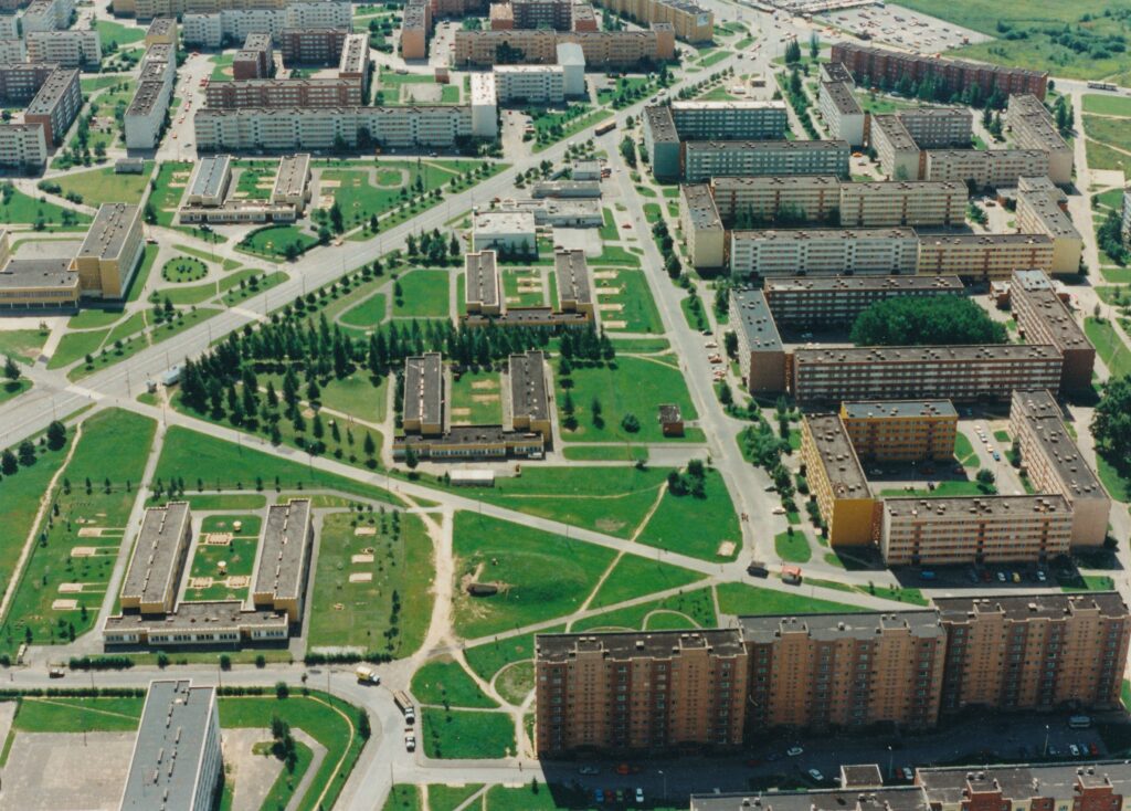 Selgus, et keldripoodide äri ei lähe nii hästi kui kioskitel. Üks probleem oli selles, et kortermajad olid pillatud laiali suurtele haljasaladele, joondumata selgesti mingite tänavate ega käidavate kõnniteedega. Modernistlikes elamurajoonides on tavaliselt ehitiste all umbes 15–20% maapinnast. Ülejäänud maa moodustab avatud ruumi, kaetud murulappide, mulla ja jalgradade võrgustikega. Alale sisse viivad vaid üksikud autoteed, sest nõukogude planeerijad ei eeldanud, et kuigi paljudel elanikel võiksid olla autod. Kuid 1990. aastatel muudeti suur osa sellest avatud alast järk-järgult parklateks, sest autoostulube ei jagatud enam tsentraalselt ja autoomanike arv kasvas plahvatuslikult. See tähendas, et keldripoodidest ei liikunud mööda peaaegu üldse jalakäijaid. Jalakäijad kasutasid laialihargnevaid jalgradu ning kõndisid mõne konkreetse hoone eest läbi ainult siis, kui nad seal või mõnes naabermajas elasid.