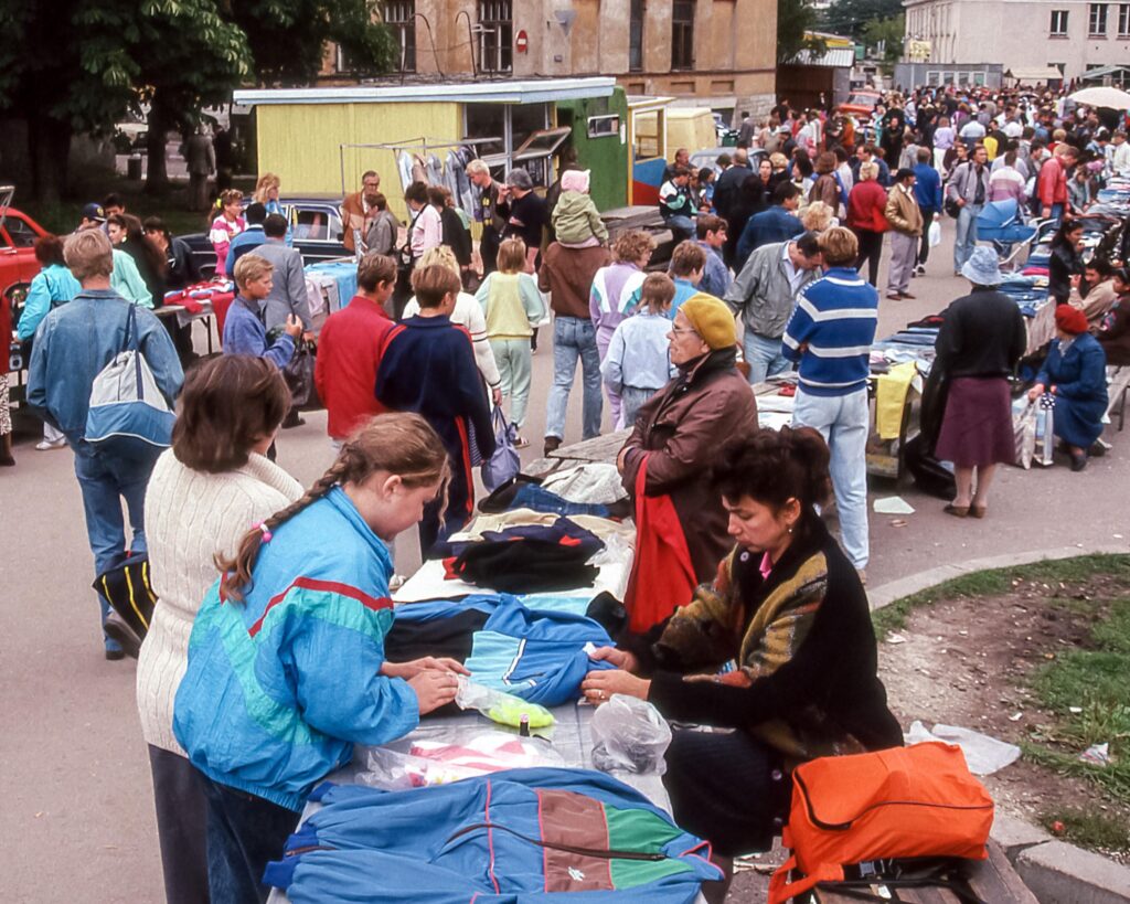 Rõivaid ja aksessuaare müüdi kioskites harva. Neid pakuti hoopis kirbuturgudel, kus külg külje kõrval konkureerisid 50–100 müüjat, igaüks oma riideid täis kuhjatud laua taga. Üks kirbuturg, kus kasutati hädapäraselt püsti löödud puust laudu, avati parkimisplatsil mitte kaugel minu majast. Laudade kohale olid lahti veetud kilerullid, et kaupa vihma ja lume eest kaitsta. Särkide, pükste, talvemantlite ja teiste rõivaesemete valik kasvas plahvatuslikult tänu sissevoolule Poola ja Türgi veel suurematelt turgudelt. Inimesed ei olnud kunagi varem niisugust mitmekesisust ja valikut näinud ning ahmisid pakutavat kokku vastavastatud janus tarbekaupade järele. Kaupmehed arveldasid sularahas ja hiilisid maksude maksmisest kõrvale. Teenitud kasum ahvatles veel rohkem kaubitsejaid turule tulema.