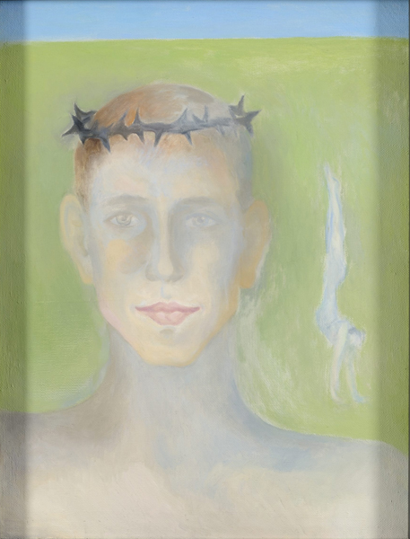 Kümmekond aastat hiljem maalib Olga Terri heledates pastelsetes toonides „Portree okaskrooniga“ (1972). Rahuliku ilmega silmatorkavalt punaste huultega ja punapäine noormees vaatab otse kaadrisse. Olukorras pole draamat ega martüüriumi, okaskroon androgüünse teismelise peas mõjub peaaegu hipiliku aksessuaarina. Tema kõrval kõnnib käte peal keegi naisterahvas. Terri ei kippunud oma teoseid täpselt avama, seetõttu on tõlgenduste horisont lai – huvitava paralleelina torkab silma, et nii „Juuda“ (1950) kui „Portree okaskrooniga“ puhul on peategelane punapäine. Teatud religioonides loetakse punapäid aga puutumatuteks. Ent miks on nii Juudas kui Jeesus punapäised, miks on liidetud hipilik esteetika ja kristlik kannatuslugu, mis huvi tärkas 61-aastasel Olga Terril järsku Kristuse vastu – need küsimused jäävad vastuseta. Religioossed paralleelid ei moodusta tema loomingus läbitajutud tervikut, Terri ei väljenda hardust ega usulisi otsinguid, vaid näib soovivat torgata oma väikese mürgiastla režiimi käsivarde, teha poliitilisi kommentaare, kasutades selleks üldtuntud kultuurilisi metafoore, mis juhtuvad olema piiblist. Säärases poliitilises lähenemises oli Olga Terri aga üksinda.