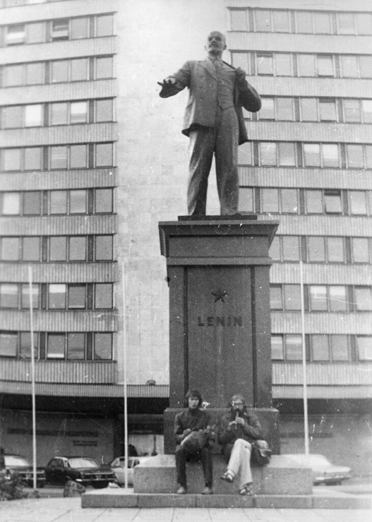 Hipid mängivad flööti Lenini ausamba ees Tallinnas. 1980. Foto autor: Peti