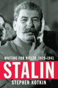 Teine raamat on Stephen Kotkini kolmeköitelisena kavandatud Stalini eluloo teine osa “Hitlerit oodates”, mis käsitleb aastaid 1929 kuni 1941 ja on 1184 lk paks. Michel Foucault’ õpilast Kotkinit ei huvita eriti Stalini tume hingeelu, vaid pigem temasuguse tegelase “võimalikkuse tingimused”. Kotkin asetab oma tegelase ideede, institutsioonide ja geopoliitika konteksti, peatudes mõnikord, et arutada ka võimaluste üle, kui Stalin oleks saanud kuuli või kuidagi teisiti surnud. Esimeses köites näiteks oletatakse, et kollektiviseerimine ehk bolševikest sõltumatu talurahvarevolutsiooni mahasurumine oleks teiste bolševike juhtimisel käinud tõenäoliselt teisiti. Ainult Stalinil oli piisavalt julmust, ideoloogilist vankumatust ja riskivalmidust, et asuda taluelu likvideerima. Ta oli Lenini kõige truum õpilane. Teise köite keskmes on Suur terror (mida muide Slezkine oma raamatus käsitleb klassikalise kollektiivse nõiajahina) ja suhted Hitleri Saksamaa ja Suurbritanniaga, mida mõjutasid despoodi ideoloogilised silmaklapid.
