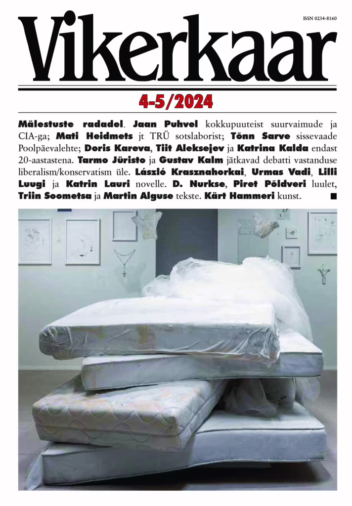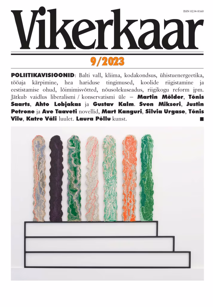 MAHA LIBERALISM!Gustav Kalmopositsioonist konservatism/liberalism. Oudekki Looneklassivõilusest. G. M. Tamáspostfašismist. Peet Kaskja TõnisSaartsparempopulismi ohjeldamisest. Nikolai KarajevEesti venelastest. EliseRohtmetsfeministlikust perepoliitikast. Aro Velmetkliimapoliitikast. MaarjaKangroUkraina päevik. Louis MacNeice’i sügispäevik. Tiit Hennoste, AadoLintropi, Katrin Tegova, Carolina Pihelga luulet, Kristjan Haljaku proosaluulet, Urmas Vadiproosat. Vaatenurgas Jaak Kangilaskielud, Hennoste Loomingu-lugu, Jüri Kolgi „Fuuga“ ja Oliver Bergi „Amsterdami aknad“. Sabina UmmelasKadri Toomi näitusest