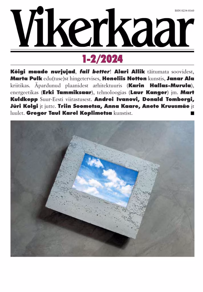 Kõigi maade nurjujad, fail better! Alari Allik täitumata soovidest, Marta Pulk edu(tuse)st hingetervises, Heneliis Notton kunstis, Janar Ala pop-kriitikas. Äparduvatest plaanidest arhitektuuris (Karin Hallas-Murula), energeetikas (Erki Tammiksaar), tehnoloogias (Laur Kanger) ja elus (Leo Luks) ja kliimaaktivismis (Margit Keller, Triin Vihalemm). Mart Kuldkepp Suur-Eesti viirastusest. Andrei Ivanovi, Donald Tombergi, Jüri Kolgi jt jutte. Eedo Kalle, Triin Soometsa, Anna Kaare, Anete Kruusmäe, Märt Sepperi luulet. Arvustused Sven Mikseri, Andrus Kasemaa, Piret Raua, Piret Jaaksi, Piret Põldveri raamatutele – Mudlumilt, Vadilt, Ave Taavetilt, Jaana Davidjantsilt, Sveta Grigorjevalt. Gregor Taul Karel Koplimetsa kunstist.