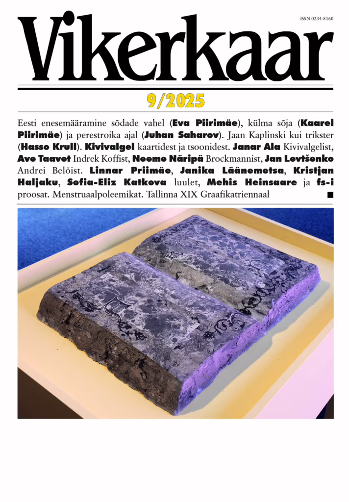 Eesti enesemääramine sõdade vahel (Eva Piirimäe), külma sõja (Kaarel Piirimäe) ja perestroika ajal (Juhan Saharov). Jaan Kaplinski kui trikster (Hasso Krull). Kivivalgel kaartidest ja tsoonidest. Janar Ala Kivivalgelist, Ave Taavet Indrek Koffist, Neeme Näripä Brockmannist, Jan Levtšenko Andrei Belõist. Linnar Priimäe, Janika Läänemetsa, Kristjan Haljaku, Sofia-Eliz Katkova luulet, Mehis Heinsaare, fs-i proosat. Menstruaalpoleemikat. Graafikatriennaal