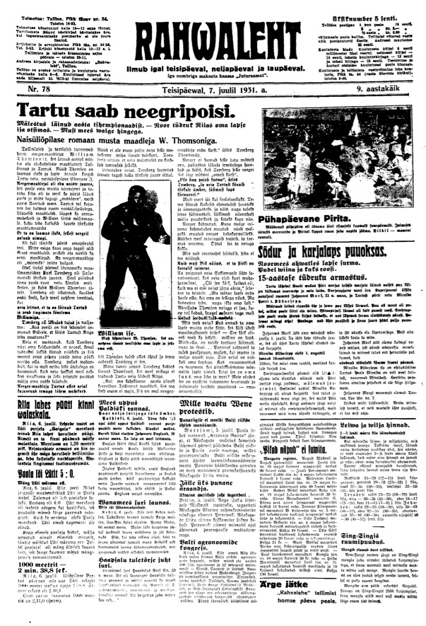 [1] Tartu saab neegripoisi. Naisüliõpilase roman musta maadleja W. Thomsoniga. Rahvaleht, 07.07.1931.