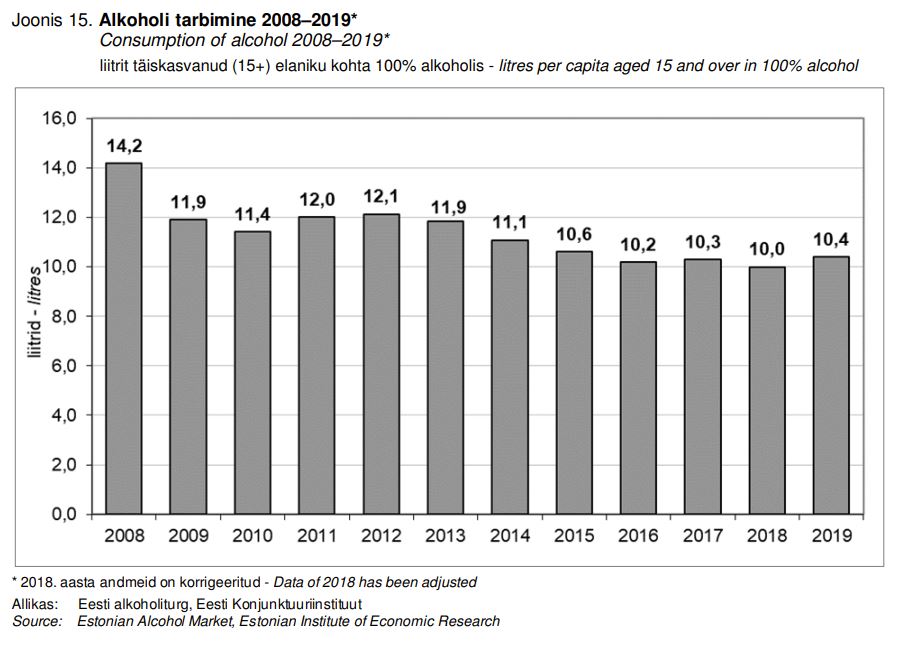 [4] Alkoholi Aastaraamat, 2014. Konjunktuuriinstituut, 2015; https://www.ki.ee/publikatsioonid/valmis/Alkoholi_aastaraamat_2014.pdf.