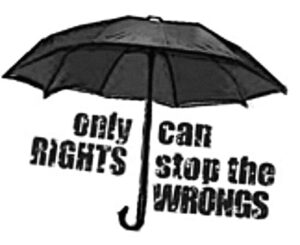 (Sümboliks on punane vihmavari. Juhtlause ütleb: „Ainult õigused võivad peatada ülekohtu.“)