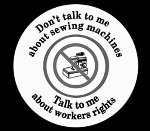 Aasia-Vaikse ookeani seksitöötajate võrgustiku logo (Keskel punase joonega maha tõmmatud õmblusmasin. Tekst: „Ärge rääkige mulle õmblusmasinaist. Rääkige töötajate õigustest.“)