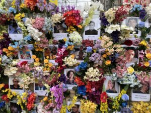 Orysiaga käisime veel mälestusseina juures, mille üks USA poiss (Leo Soto) oli üles seadnud: pikk tara, mida katavad kirevad plastiklilled ja tapetud inimeste fotod. Inimesed vaatasid seda poolvesiste silmadega, aga keegi avalikult ei nutnud.