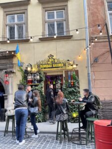 Kohtusime Virmenska ehk Armeenia tänaval Orysia klassiõe Sofiaga, kes on plakatikunstnik ja illustraator. Kohvik, kus me juttu ajasime, Virmenka-nimeline, olevat olnud omal ajal kunstnike lemmik. Praegu istus ühes äärelauas halli habeme, sinikollase dressipluusi ja ilmastikukindla väljanägemisega Igor, kes olevat seal püsikunde, samuti kunstnik.
